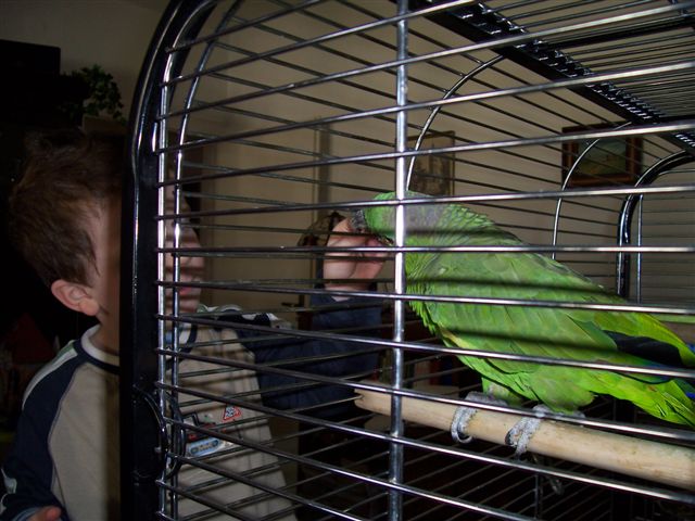 Während wir nicht mal dem Käfig zu Nahe kommen können, kann Lars ihm seine wöchentliche Wallnuss in kleinsten Stücken füttern....