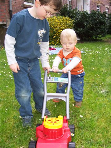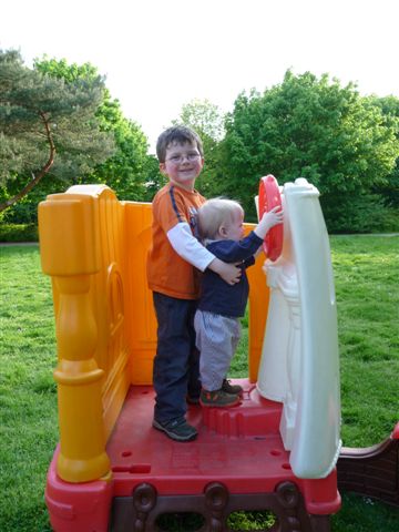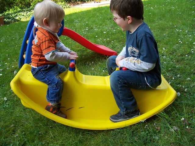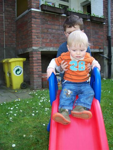 Toll, wenn der große Bruder beim Rutschen hilft.