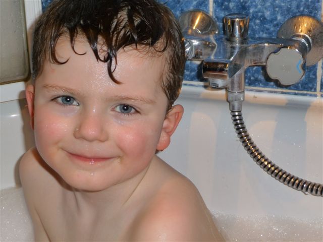 einzige Matschpfütze weit und breit und Nils hat sie gefunden ![]()