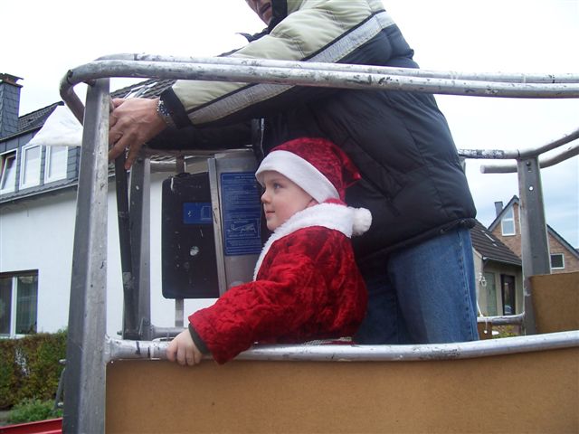 Lars fährt im Steiger nach oben um sein Päckchen an den etwa haushohen Tannenbaum zu hängen. Mensch war der Zwerg aufgeregt......