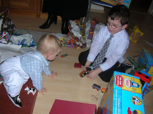 Lars hilft Nils beim Auspacken...