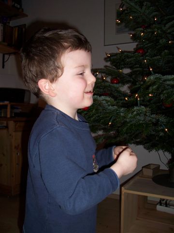 Normalerweise schmücken Mami und Papi den Baum am Abend vor Heiligabend, wenn der Zwerg im Land der Träume weilt. Des Morgens ist dann die Wohnzimmertür abgeschlossen - das Christkind hat schließlich noch allerhand zu tun und darf nicht gestört werden. Der Grund, warum Lars aber dieses Jahr mithelfen durfte und warum der Baum schon am späten Nachmittag aufgebaut wurde, war dieser hier:
