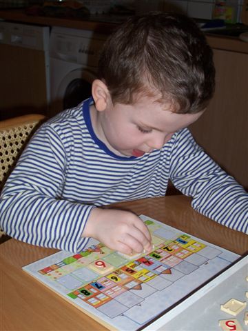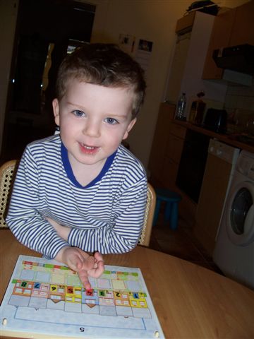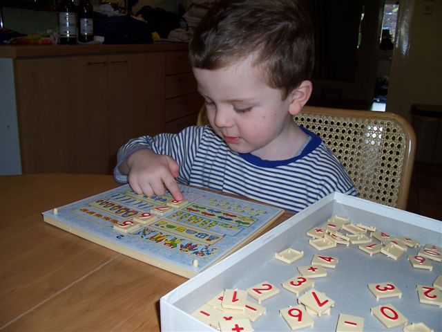 Der Sommer ist zwar nicht vorbei, aber die wirklich heißen Tage sind sehr rar geworden. Jetzt kommt die Zeit, in der man doch mehr drinnen ist. Sohnemann hat sein Interesse an den Zahlen entdeckt und macht das schon sehr gut. Ich hab sie ihm nihct beigebracht, aber er wußte fast immer auf Anhieb, wie welche Zahl aussieht und zählen bis 10 ist auch schon kein Problem mehr. Aber seht selbst, wie stolz der Zwerg ist: